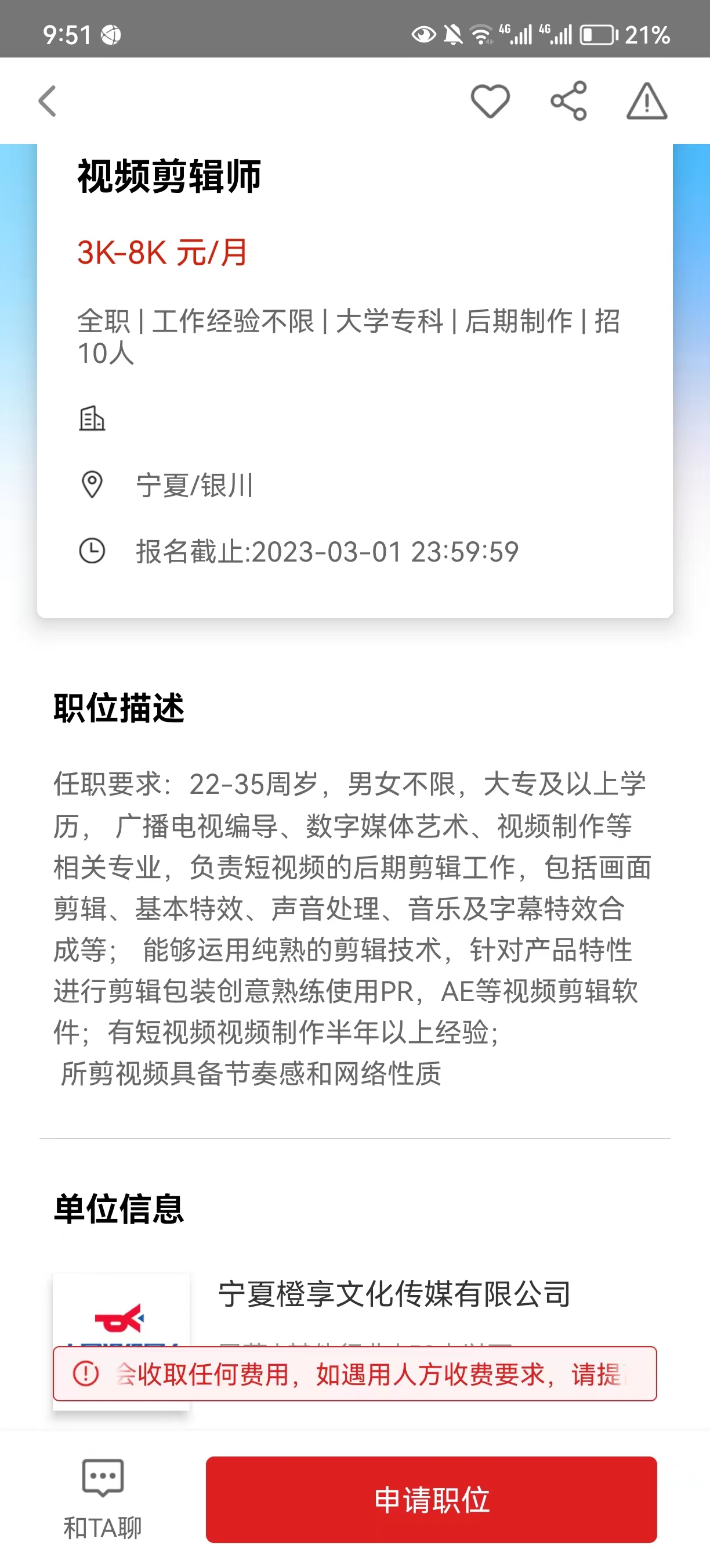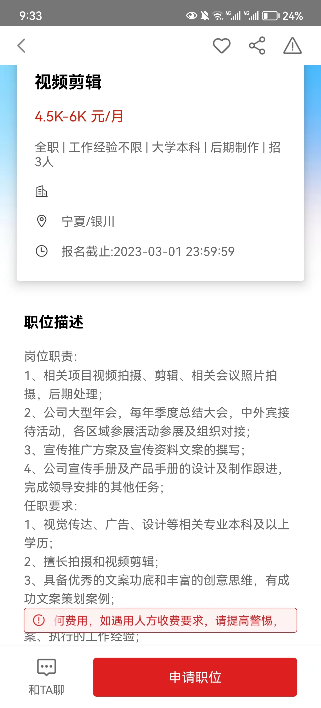 岗位:视频剪辑