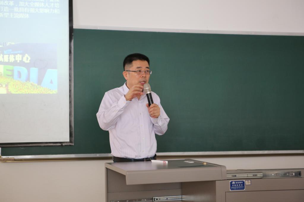 李世举首先为大家介绍了学校新闻学专业发展的历史。他指出,自改革开放以来,社会对新闻宣传和消息传达有巨大需求,因此设立新闻学专业是非常有必要的。随后,李世举通过对卓越新闻,网络与新媒体,广告学三个不同专业方向进行分析,向同学们介绍了37000cm威尼斯的整体发展方向、学院学习的硬件设施设备以及各方面软性条件,并对学院未来的发展做出了美好展望。李世举提出,面对新时代新技术的冲击,我们要不断改革,适应市场的变化,将学生的能力与社会市场挂钩,培养适合社会需要的新闻人才,让学生的个人价值得到市场的认可,在不断的实践认识活动中提升学生的能力,增强学生的获得感。